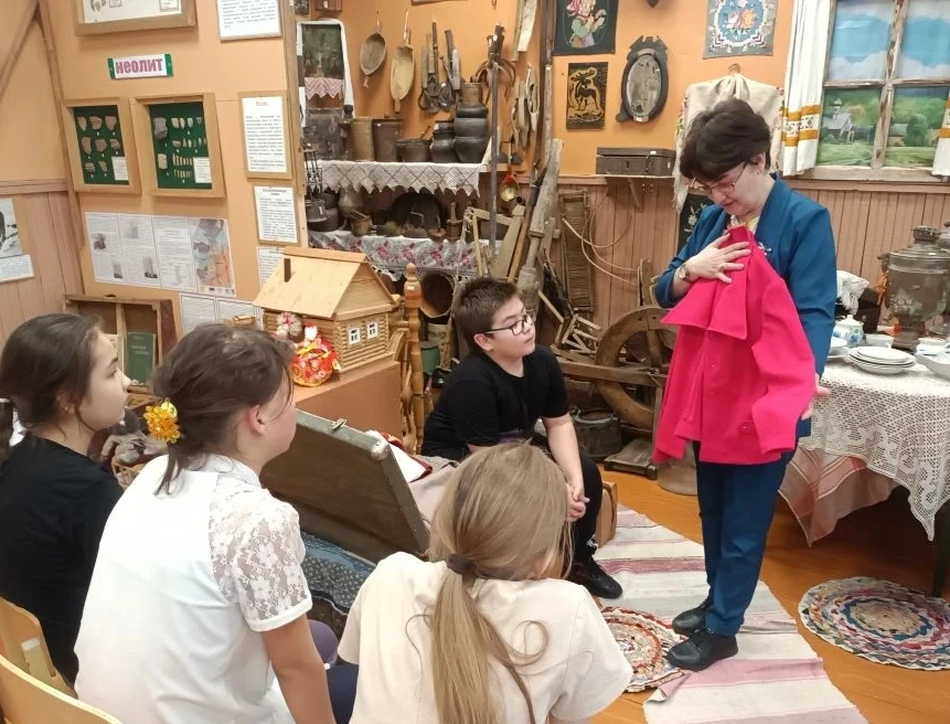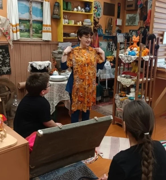 Занятие «Бабушкин чемодан» на кружке «Мой край» с Преображенка Бабушкин чемодан — это машина времени. Открываешь крышку, а там жизнь бабушки и дедушки. Мы часто думаем: если бы эти вещи умели говорить, сколько историй они бы рассказали? Вот это, строгое шерстяное платье, было надето на первое сентября, когда она работала учительницей. А это летнее, ситцевое, помнит жаркое лето 70-го, танцы в клубе. А это дедушкина шапочка, наверное, в ней он был самым модным. Посмотрите какое качество ткани! Мы смотрим на эти вещи и понимаем, что в них энергия рук, которые их носили, гладили, берегли. Это напоминание о том, что красота вне времени. И что у каждого из нас есть та самая «бабушкина нить», которая связывает нас с чем-то гораздо более важным, чем повседневная суета.